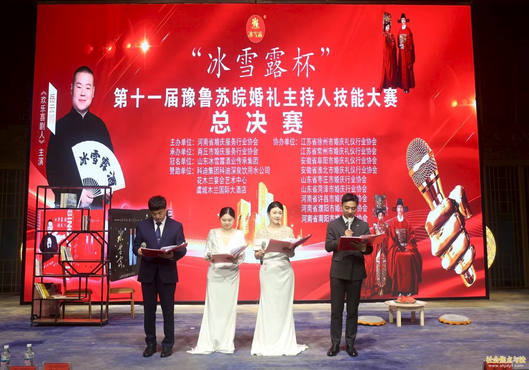 社会焦点与法.讯 记者:燕建设 通讯员: 王拥军 任洪涛 刘利峄 马迎军 孙共田 梁忠强 2025年 7月26日至27日,由山东冰雪露传承酒业集团冠名的“冰雪露杯”第十一届豫鲁苏皖婚礼主持人技能大赛在河南省虞城县成功举办。来自河南、山东、江苏、安徽四省的婚庆行业精英、专家评委及参赛选手齐聚一堂,共同见证这场婚礼主持界的年度盛会。