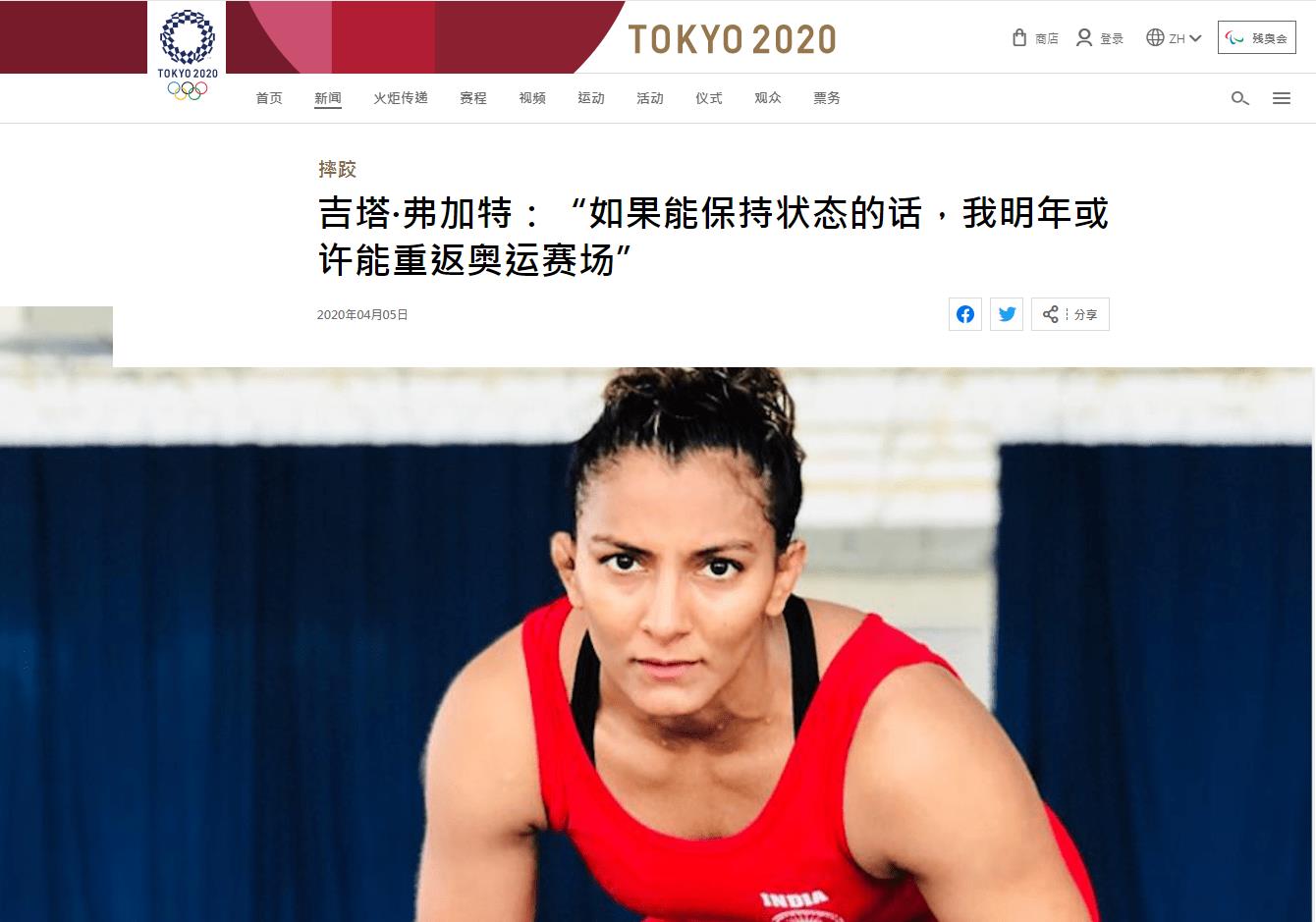 4月6日电 电影《摔跤吧!爸爸》原型吉塔是印度首位获得奥运参赛资格的女摔跤手。现在32岁的她在接受东京奥组委官方采访时表示,东京奥运会延期让自己或许可以考虑复出。