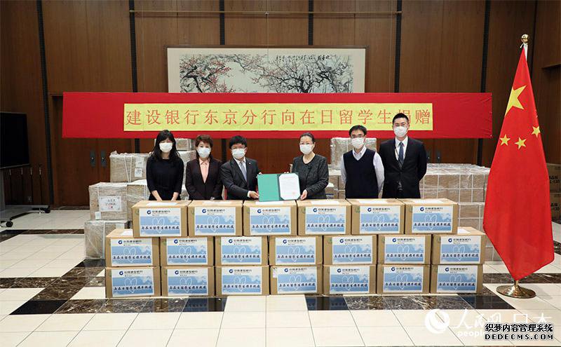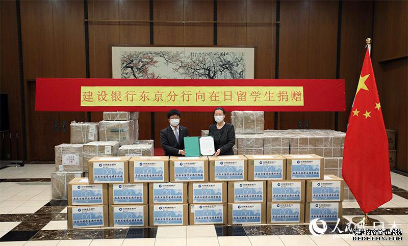 人民网东京4月7日电(李沐航)7日,中国建设银行东京分行通过中国驻日本大使馆向在日中国留学生捐赠5万只爱心口罩,帮助留学生渡过难关。中国驻日本大使馆公使郭燕、办公室王朝辉、政治部陆存喜、商务处张语秋以及中国建设银行东京分行总经理解陆一、副总经理王玉洁等出席了此次捐赠仪式。