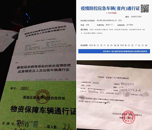 关师傅送货所需的部分通行证。