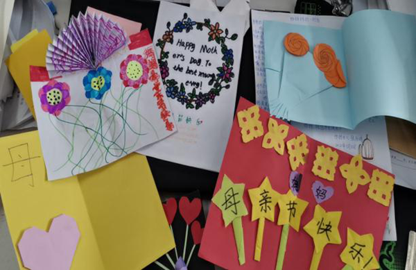 三四年级开展的“我给妈妈做一张贺卡”活动: