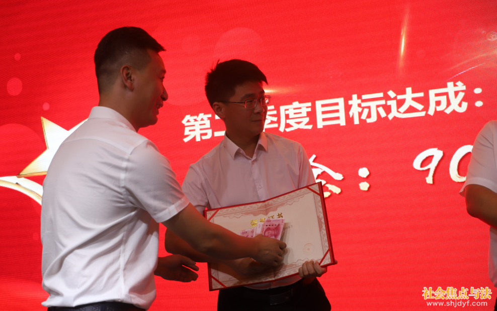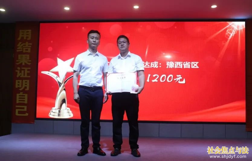 王恩华王总上台为达成目标的各位省区经理颁发现金奖励,希望各省区再接再厉,达成更大的目标!