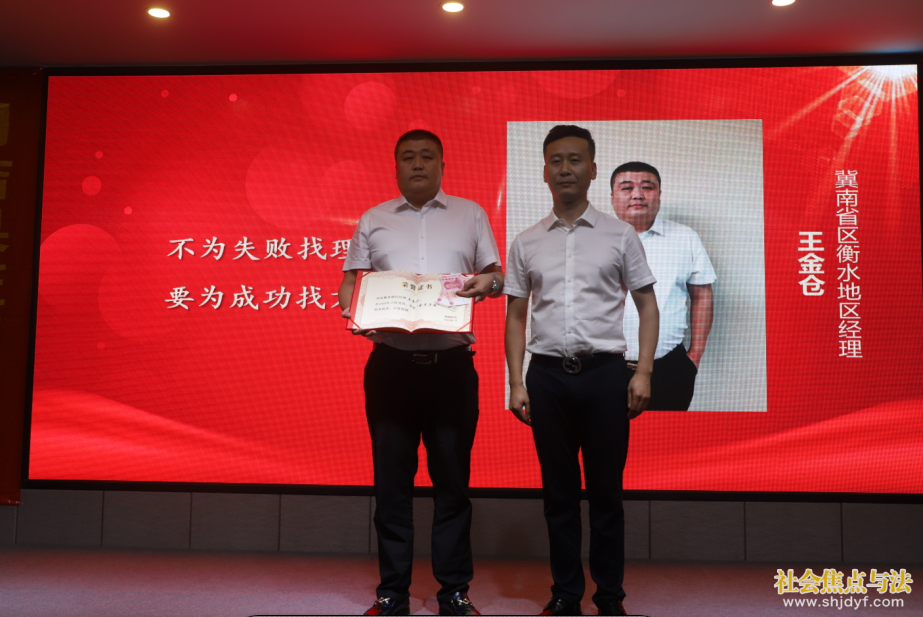 王恩华王总上台为四位优秀地区经理(晋陕兰州李建桦、河北邯郸李广、豫西郑州胡要武、湖南衡阳王凯)颁发荣誉证书和精美礼品。