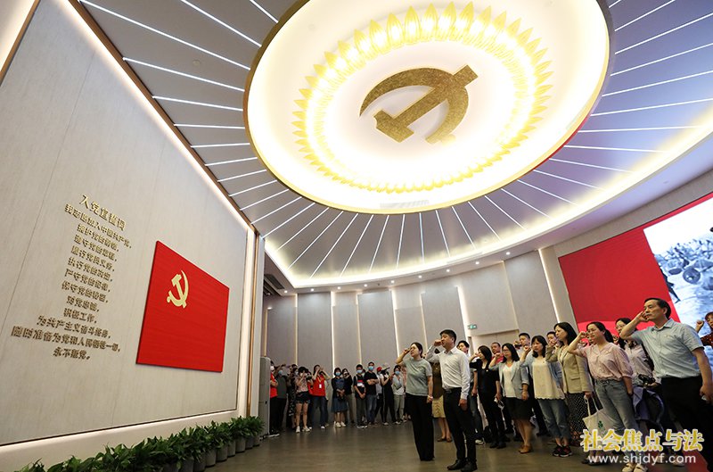 党员在上海中共一大纪念馆重温入党誓词(2021年6月3日摄)。
