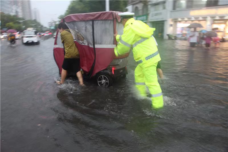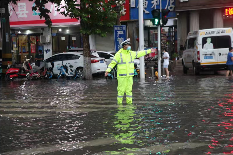 商丘交警站好“高峰岗”,雨中守护平安畅通路