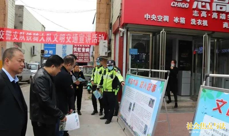 社会焦点与法.讯(通讯员:燕博宇 谢军)为进一步提升辖区居民交通安全出行意识,近日,河南省商丘市公安局交警支队铁骑大队副大队长张建超带领二中队中队长崔军伟及队员宋中印、罗凯等8名队员在商丘市家电商会会长江振及商会成员的大力支持下,走进商品大世界开 ...