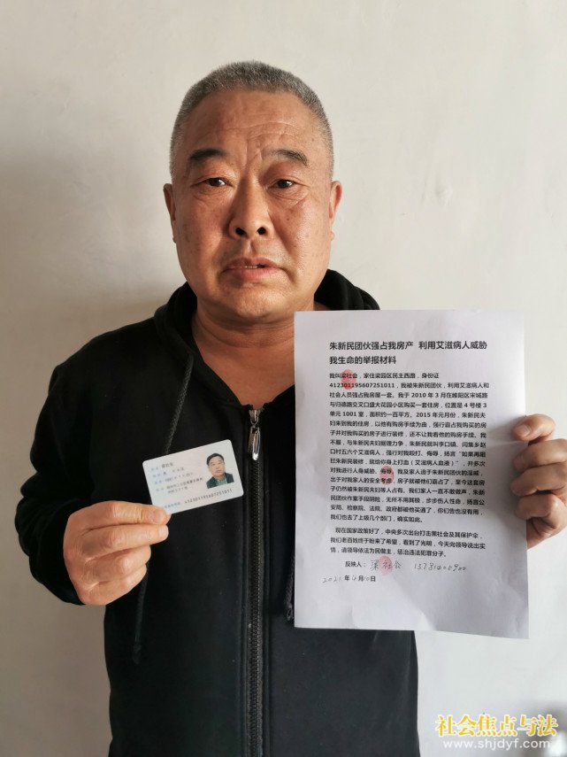 我叫梁社会,家住梁园区民主西路,身份证号码:412301195607251011,我被朱新民团伙,利用艾滋病人和社会人员强占我房屋一套。