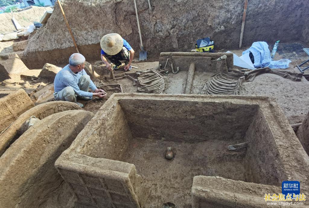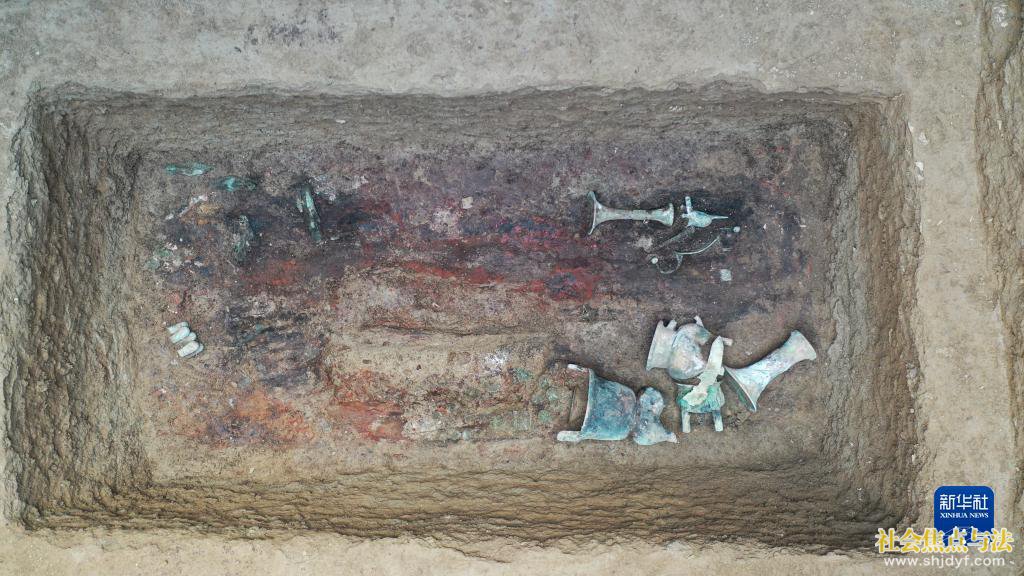 这是邵家棚遗址中的一座商代墓葬,其中出土了数量丰富的青铜器(资料照片)。新华社发(安阳市文物考古研究所供图)