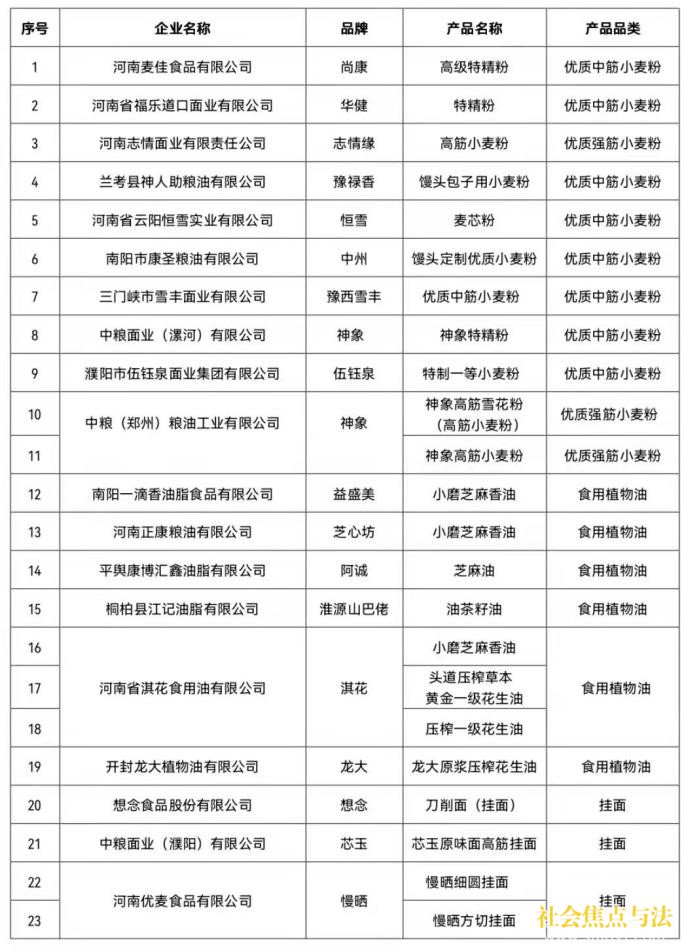 河南省入选“中国好粮油”产品名单: