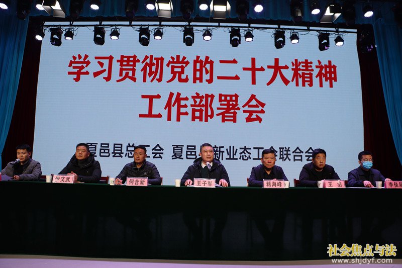 社会焦点与法.讯 记者:燕建设 通讯员:王拥军 任洪涛 燕博宇 刘利峄 马迎军 张富义 2月16日下午,夏邑总工会、县新业态工会联合会举行学习贯彻党的二十大精神再动员部署会。市政协委员、县总工会副主席、县新业态工会联合会主席王子军出席会议并作重要讲话。