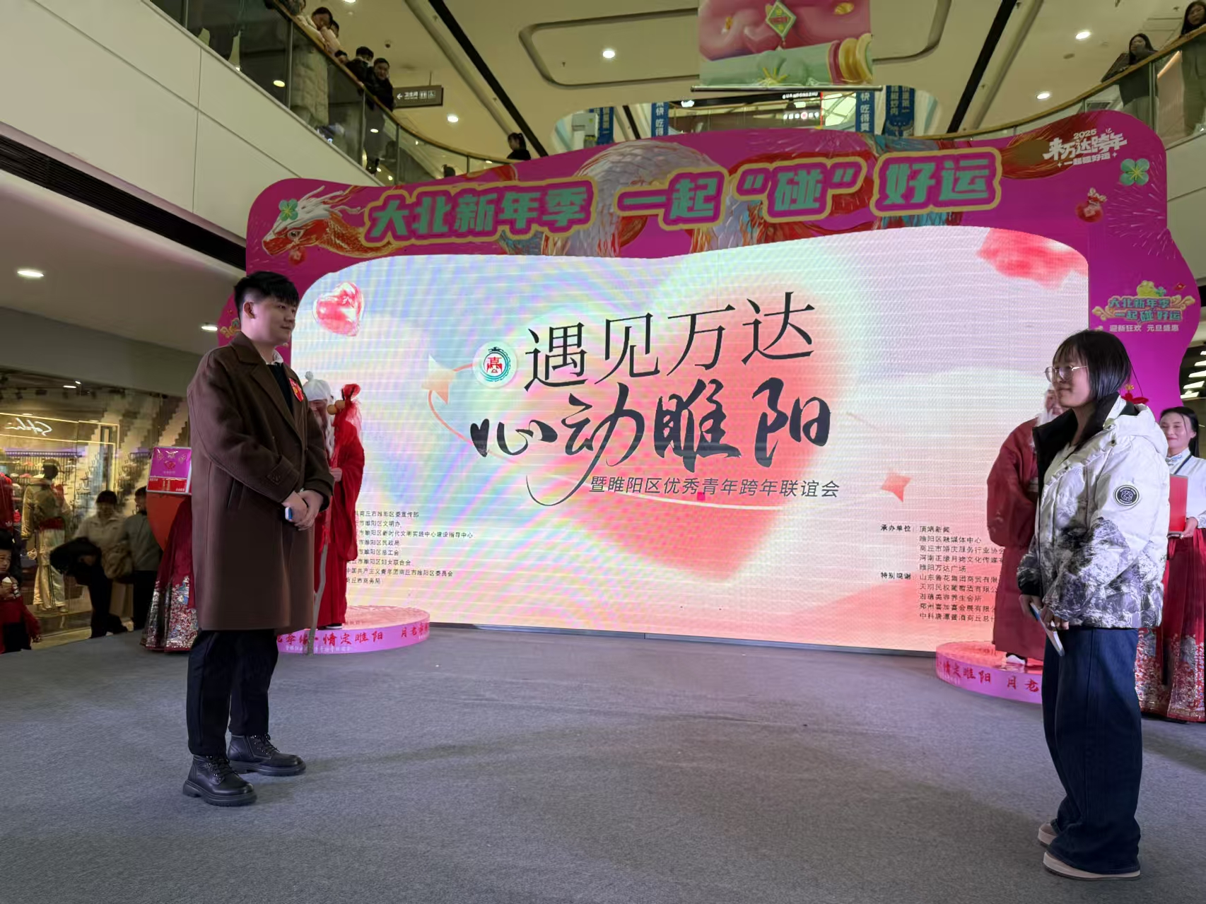 社会焦点与法.讯 记者:燕建设 通讯员: 王拥军 任洪涛 粱忠强 爱在睢阳,好事成双。12月31日,“遇见万达 心动睢阳”——河南省商丘市睢阳区优秀青年跨年联谊会在商丘睢阳万达广场拉开帷幕,上百名单身青年男女共聚一堂寻觅良缘,上演了一场浪漫的邂逅。