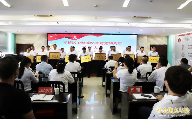 社会焦点与法.讯(记者:王明杰 通讯员:程红伟 杨红治)6月30日上午,信阳市平桥区卫健委召开纪念建党99周年表彰大会。平桥区卫健委党组副书记、副主任王延生主持大会,委机关全体科级干部、委属二级机构党政负责人、受表彰的优秀共产党员和委系统先进工作者、机关中层干部参加会议。