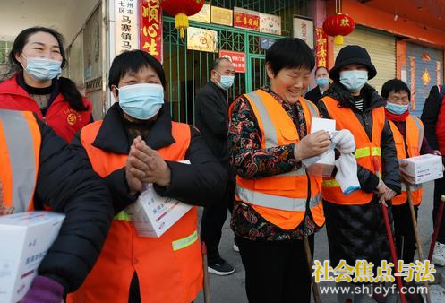 社会焦点与法.讯(通讯员:燕博宇 谢军)2021年2月16日上午,春光灿烂,身着“绿城使者”红马甲的志愿者出现在河南省郑州市二七区马寨街头。“大爷,送您一只口罩,疫情防控期间,请您做好个人防护!”志愿者们看到在街头晒太阳或步行的个别村民没有戴口罩,便主动上前送上口罩并劝导他们戴好口罩。