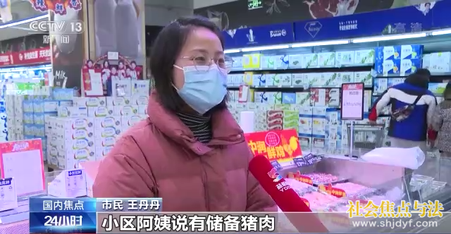 市民 王丹丹:小区阿姨说有储备猪肉,又便宜又放心,快过年了,家里多买一点回去包饺子。